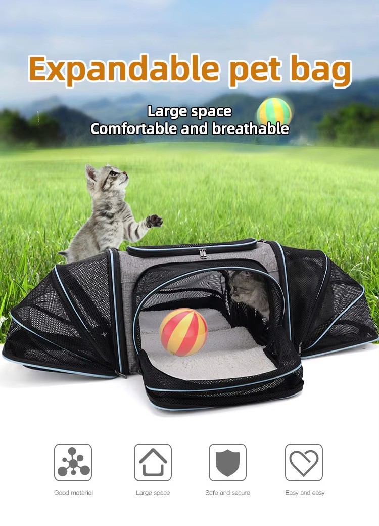 Double-sided fan-shaped expansion, double the space, pets can move freely inside, unlocking a new travel posture.The large opening design makes it easier for pets to enter and exit.